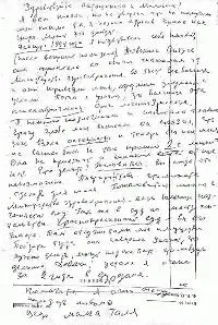 Я немного подлечилась и написала главному врачу, чтобы меня выписали. Она сказала, что дочь взяла опекунство и теперь меня не выписывают. И так прошло два с лишним года. Она не приезжает, и никаких вестей от нее нет. Что делать? Жаловаться. Но отсюда это невозможно. Постарайтесь, что сможете, сделать для меня. Пожаловаться можно в Министерство здравоохранения – ведь больницы подчиняются ему. Также в суд по месту жительства. Краснопресненский суд – вы его знаете. Там отсуживали мое имущество. Пойдите туда, они, наверное, знают, что нужно делать, могут подсказать что-нибудь дельное. Девочки! Устала я очень за два года в дурдоме. Помогите. Я очень спешу передать письмо. Целую. Мама Галя».