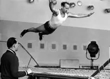 | На физподготовке: космонавты Павел Беляев (слева) и Алексей Леонов | |