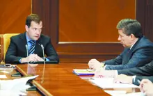 | Дмитрий Медведев и глава «Роскосмоса» Владимир Поповкин | |