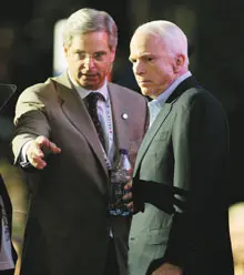 О том, что вашингтонские лоббисты поддерживают рабочие контакты с российскими предпринимателями, свидетельствует еще одна история, героем которой стал опять-таки Олег Дерипаска. Она появилась сначала в московской англоязычной газете eXile, издаваемой гражданином США Марком Эймсом, а затем была перепечатана еженедельником Nation с таким расчетом, чтобы скомпрометировать кандидата республиканцев Джона Маккейна перед самыми выборами – номер вышел 20 октября.