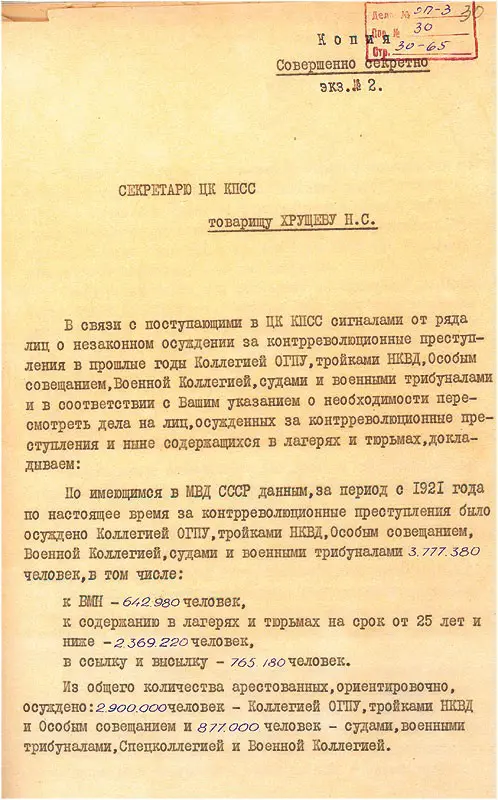 Как выяснилось спустя многие годы, масштабы репрессий при Сталине в хрущёвском докладе были многократно преувеличены