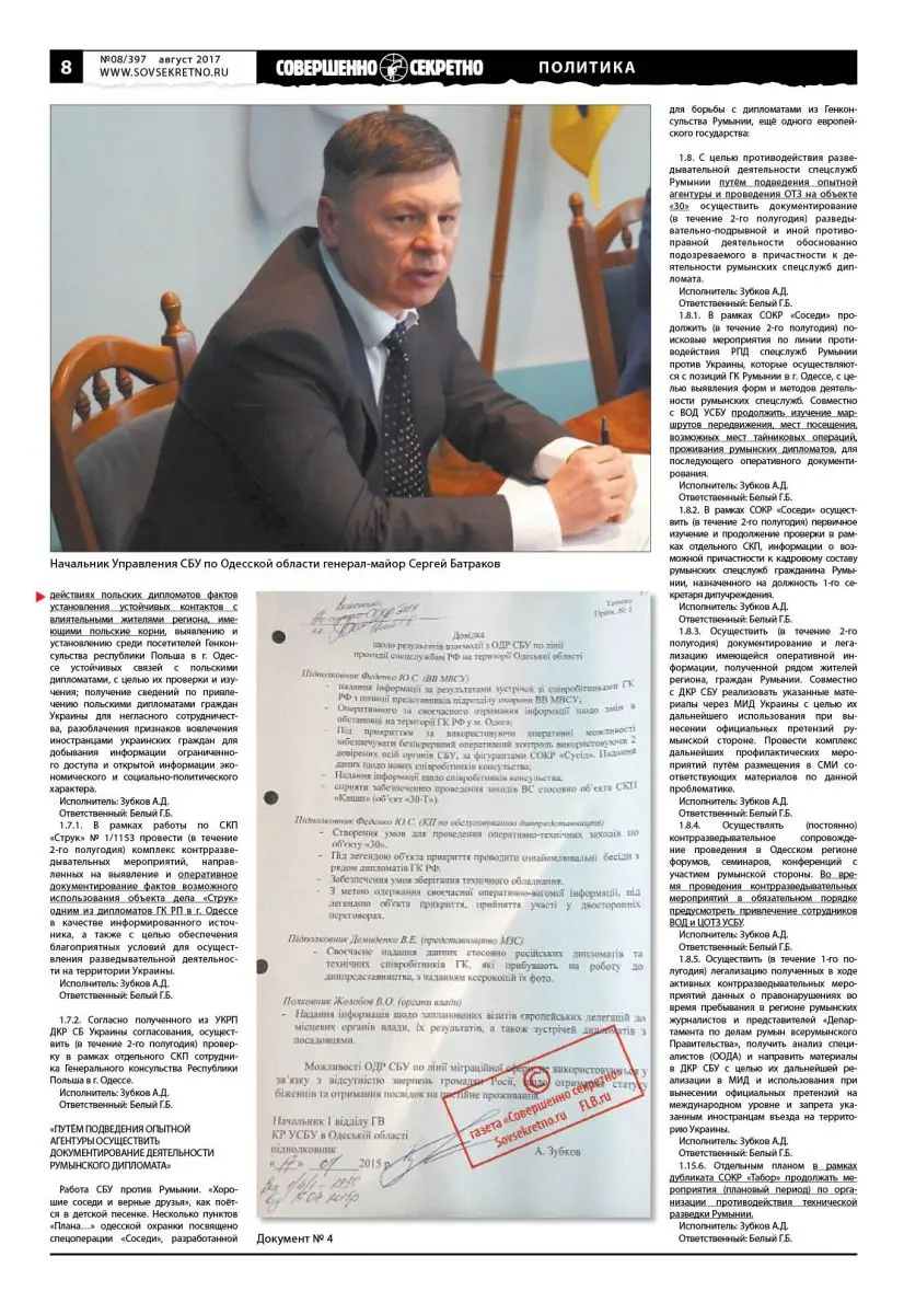 Работа СБУ против Румынии. «Хорошие соседи и верные друзья», как поётся в детской песенке. Несколько пунктов «Плана…» одесской охранки посвящено спецоперации «Соседи», разработанной для борьбы с дипломатами из Генконсульства Румынии, ещё одного европейского государства: