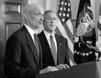 Однако же нашлась в Конгрессе группа сенаторов-республиканцев во главе с лидером фракции Биллом Фристом, которые, едва президент высказался неодобрительно о Nuestra Himna, побежали, треща фалдами, вносить проект резолюции о защите бесценного достояния англоязычного патриота. Дошло до того, что умная первая леди, разбирающаяся в вопросах языкознания несколько лучше своего супруга, вежливо поправила его.