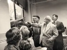 В Голливуде руководство кинокомпании «ХХ век Фокс» устроило в честь Хрущева ланч на 400 мест. Ажиотаж был такой, что звезды приглашались без супругов или супруг. Голливуд в то время был еще травмирован «охотой на ведьм», устроенной сенатором Маккарти, черные списки оставались в силе. Некоторые – например, Бинг Кросби и Рональд Рейган – демонстративно, в знак протеста против визита, отказались от приглашения, а драматург Артур Миллер, чьи левые взгляды расследовала комиссия по антиамериканской деятельности, остался дома из осторожности. Его тогдашняя жена Мэрилин Монро приехала и была особо представлена советскому вождю.