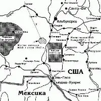 | Карта района штата Нью-Мексико, где в 1947 г. произошли катастрофы НЛО |