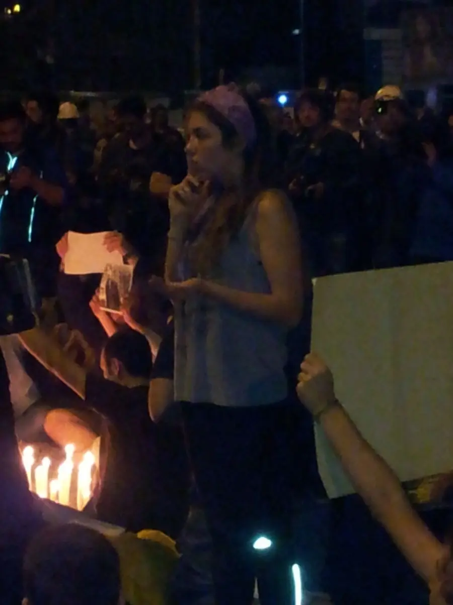 — Мы все должны молчать! Сесть и молчать. В этом наш протест: зажечь свечи, сидеть и молчать. Понимаете? — громко спрашивает девушка. Очень громко.