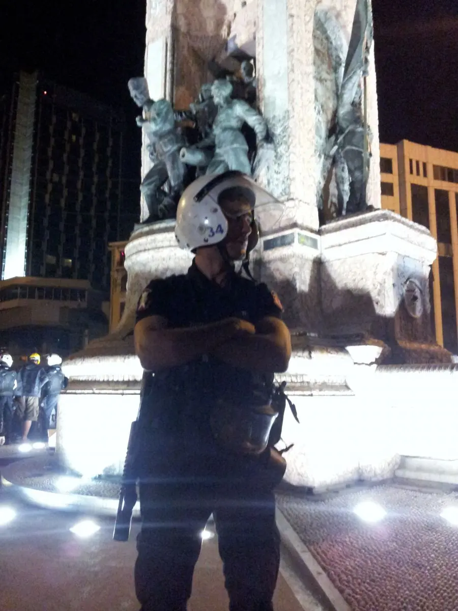 — Здесь Таксим — и везде Таксим! — примерно так можно перевести главный лозунг стамбульского «оккупая». Скандируется по любому поводу, от десятка до десятка тысяч исполнителей разгоняется секунд за семь. Когда повод есть, то еще быстрее. В этот вечер повод назревал конкретно. На водометах по углам площади Таксим врубили «люстры»-мигалки. Вокруг памятника Ататюрку шнырял небольшой бронированный автомобильчик — окна и камера, вынесенная на шесте, забраны мелкими решетками. Полицейские, обычно проводящие время на окрестных улицах в уставном режиме «спать тире отдыхать лежа не раздеваясь», подтянулись к периметру — полная экипировка, щиты, спецтехника под газовый снаряд.