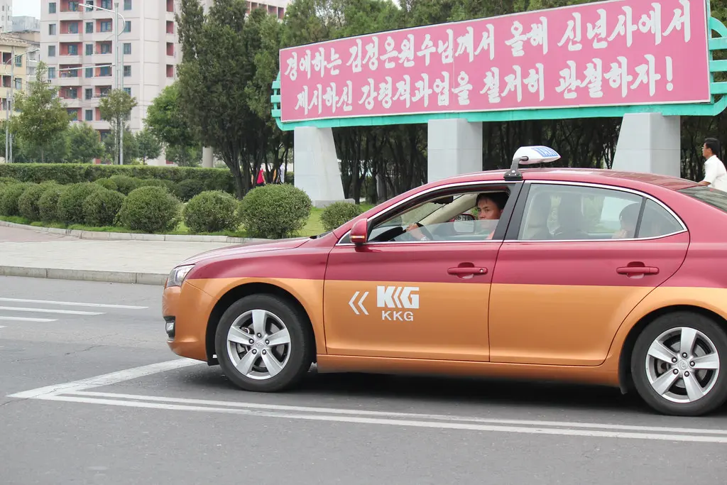 Ровно год назад, летом 2014 года, пхеньянцы начали обращать внимание на новенькие такси, появившиеся на улицах столицы. Машины было трудно не заметить из-за их яркой окраски. На темно-бордовых и золотистых седанах бросались в глаза большие буквы, обозначающие название компании – KKG.