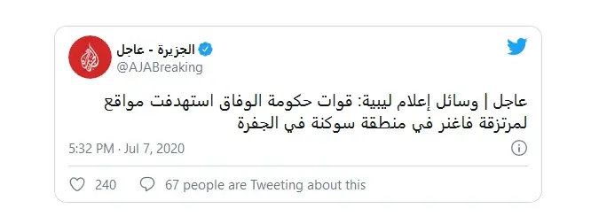 Ливийская база Аль-Джуфра подверглась удару со стороны турецких ВВС. Предполагается, что это стало ответом на совершенный несколько дней назад обстрел базы Аль-Ватыя. Об этом написали пользователи Twitter и издание Аль-Джазира.